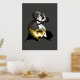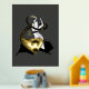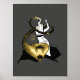 A fun fusion of ancient egyptian mythology and artistic expression. Le Bastet de Cat Goddess Bastet is depicted as bellydancer playing her her ancient instrument sistrum. As the music notes gradually diminish in size, they transform into the scales of the nefarious serpent, Apep (donc known as Apophis).