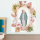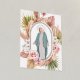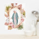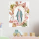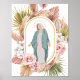 Une belle impression comprenant une image illustrée à la main de la Sainte Mère, des flores d'aquarelle et des détails de feuille d'or.