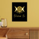 Un design wiccan, païen et sorcière combinant le symbole de la déesse de la triple lune avec un pentcle et le dicton wiccan "Béni sois" en feuille d'or véritable sur un arrière - plan noir.