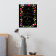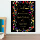 Boho moderne fleurs sauvages éclatantes nuptiale bienvenue bohème douche nuptiale signe de bienvenue avec véritable feuille d'or. Avec des teintes rose, rouge, vert et violet des fleurs botaniques inspirées des jardins rustiques fleur sauvage et aquarelle, avec une végétation subtile et une typographie boho moderne sur arrière - plan foncé.
