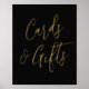 Symbole de mariage simple et élégant avec l'expression "Cartes et Cadeaux" affichée dans un script en feuille d'or avec un arrière - plan noir. Personnalisez les cartes et les cadeaux en papier noir et or avec du texte personnalisé tel que vos noms, date mariage, message de remerciement, etc. Le panneau peut également être utilisé pour d'autres événements tels que des douches nuptiales, des baby showers, des fêtes d'anniversaire, et plus encore!