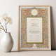 Ce certificat Nikkah est exquis pour les cérémonies islamiques. Alliant le charme intemporel de l'Art Nouveau à l'esthétique vintage contemporaine et aux motifs ornementaux traditionnels, cette collection témoigne de la beauté et de la profondeur du patrimoine culturel islamique. Art Nouveau à la rencontre de la tradition islamique : Chaque pièce de notre collection est inspirée par l'élégance débordante de l'Art Nouveau, imprégnée d'éléments qui honorent les traditions islamiques. Nous avons réinventé ces modèles classiques pour la mariée et le marié musulman moderne, en équilibrant l’art historique avec les sensibilités contemporaines. Vintage contemporain avec une âme culturelle : "Eternal Elegance" n'est pas seulement un nom, mais une célébration du patrimoine et de la modernité. Nos conceptions mêlent harmonieusement sophistication vintage et modernité, tout en respectant les valeurs culturelles et l'esthétique des traditions islamiques. La collection présente des vêtements ornés de motifs complexes et d'une palette de couleurs qui évoque à la fois le passé et le présent. Ornementation islamique et calligraphie : Au coeur de notre collection se trouve la belle utilisation de la calligraphie islamique, y compris le Bismillah ("Au nom d'Allah"), élégamment incorporée dans les invitations et la papeterie. Certaines pièces comportent aussi des prières ou des voeux en exquis lettres arabes, symbolisant l'union spirituelle et les bénédictions du couple - vous pouvez les ôter s'ils ne correspondent pas.