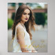 Cette affiche chic de graduation comporte un script de feuille d'or écrit à la main sophistiqué sur une photo pleine tendance de votre diplômé. Customisez cette gravure avec votre photographie complète du lycée, du collège ou de l'université et votre nom pour un décor élégant de fête de remise de diplômes.
