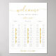 Arcitrus d'aquarelle moderne citron et orange mariage accueil tableau de sièges affiche en feuille d'or. 3 tables longues avec un tableau de sièges facile à utiliser en modèle. Unique aquarelle peinture d'oranges et de segments orange avec feuillage vert et citrons jaunes sur une branche avec des segments de verdure et de citron. Facile à customiser stylé feuille d'or script de typographie avec le nom de la mariée et des mariés et votre propre message de bienvenue. OEuvre originale de l'artiste Catherine Sweetman