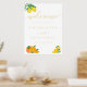 Mariage moderne citron et orange aquarelle d'agrumes accueillent affiche en feuille d'or. Unique aquarelle peinture d'oranges et de segments orange avec feuillage vert et citrons jaunes sur une branche avec des segments de verdure et de citron. Facile à customiser stylé feuille d'or script typographie avec le nom de la mariée et des mariés, la date du mariage et votre propre message de bienvenue. OEuvre originale de l'artiste Catherine Sweetman