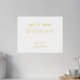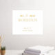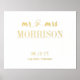 Impression mariage romantique avec m & mrs connecté avec des coeurs interverrouillés, votre nom de famille partagé en élégantes grandes lettres, votre date de mariage, et l'emplacement du mariage, le tout en feuille d'or sur un arrière - plan blanc.