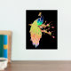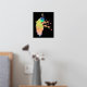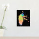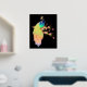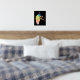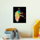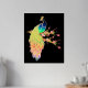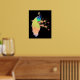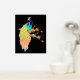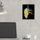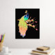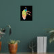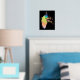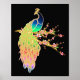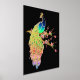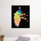 Gold foil print, with a colorful peacock sitting on a cherry blossom tree branch, against a black background. Stunning print that goes well in any room.