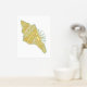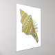 Impression de papier à feuille chic, avec feuille d'or et coquillage de conque aqua, sur un arrière - plan blanc.