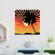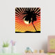 Impression de feuille élégante avec coucher de soleil de feuille dorée, avec une silhouette de palmier au premier plan. Belle impression avec une touche tropicale.