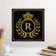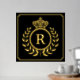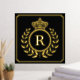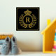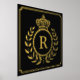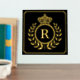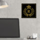 Ce design d'impression de papier peint d'inspiration pourcentage comprend un cadre géométrique dans un style Art Déco élégant avec une élégante couronne de laurier et un motif de couronne. Votre lettre monogramme personnalisée remplit le centre. Utilisez le modèle facile pour ajouter votre texte. L'arrière - plan est noir, et le reste du design est imprimé en papier peint ! Choisissez entre l'or ou l'argent.