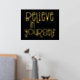 Croyez en vous Motovational Black Luxury Real Foil dans votre choix d'or ou d'argent pour ce dicton encourageant sur un arrière - plan noir classe que vous pouvez changer à une autre couleur si vous le souhaitez.