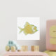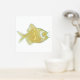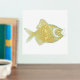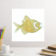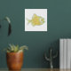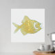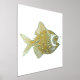 Chic foil print, with a gold foil and aqua fish, on a white background.