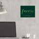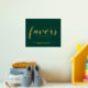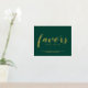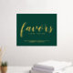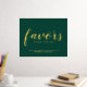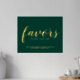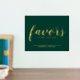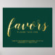 Script moderne Emerald Green et Gold Wedding Favors Signe avec le titre "Favor" en véritable feuille d'or police de script moderne avec détails en vrai feuille d'or police sans serif moderne sur arrière - plan vert émeraude.