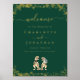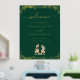 Dinosaur Theme Wedding Welcome Poster Sign dark emerald green & Gold Foil with T-Rex Bride and Groom Jurassic Dino