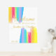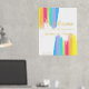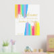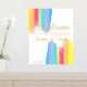 Belle affiche d'accueil en feuille d'or de mariage arc-en-ciel avec de jolies touches de peinture artistique pleine de couleurs vives. Cette décoration colorée est parfaite pour un couple artistique ou une réception gay et lesbienne. L'imprimé coloré à l'aquarelle présente du texte gris charbon qui dit Bienvenue à notre Mariage.