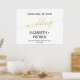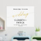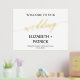 Cette feuille d'or élégante et papier d'accueil mariage noir est parfaite pour un mariage simple. Le design neutre est orné d'une enseigne minimaliste ornée d'une typographie de feuille d'or pressée et fantaisiste et romantique. Customisez l'affiche avec le nom de la mariée et du marié, ainsi que la date et l'emplacement du mariage.