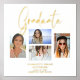 Élégant Script Multi Photo Remise de diplômes Diplômé Fête de diplômé Feuille d'aluminium Impressions Affiches Panneaux Bannières comporte quatre de vos photos préférées de votre université, collège ou lycée diplômé avec le script calligraphique en feuille d'argent ou d'or moderne en spirale "Diplômé". Décoration de fête de remise de diplômes simple, élégante et chic ou cadeau de remise de diplômes. Créé par ©Evco Studio www.zazzle.com/store/evcostudio