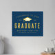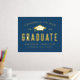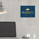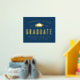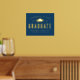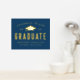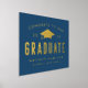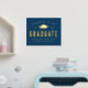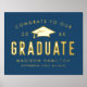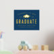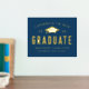 Affiche de graduation moderne avec lettrage en feuille d'or audacieux avec un arrière - plan de la marine. La conception comporte un bouchon de graduation en feuille d'or avec l'expression "Félicitations à notre diplômé". Personnalisez le panneau de graduation de la marine et du papier doré en ajoutant le nom du diplômé, le nom de l'école et l'année de graduation. Pour un look plus personnalisé, changez l'arrière - plan en couleurs de votre école. L'affiche de fin d'études est parfaite pour votre fête de fin d'études secondaires ou collégiales !