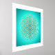 Un superbe imprimé d'art orné d'un symbole de mandala fleur de vie en or ou en argent réel sur un bel arrière - plan de couleur turquoise. Parfait pour décorer un espace de yoga ou de méditation.
