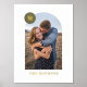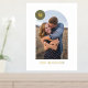 Montrez une photo de famille, de fiançailles ou de mariage qui vous est chère avec cette impression d'art personnalisée, qui dispose d'une grande arche moderne. Dans le coin supérieur, il y a un cercle coloré avec de l'espace pour un monogramme. Le nom et le monogramme sont pressés en feuille d'or ou d'argent pour une sensation plus luxueuse. Ce design est suffisamment polyvalent pour fonctionner avec une variété de styles de décoration maison.