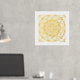 Cette belle impression d'art présente une véritable illustration de fleur de mandala en feuille d'or. Parfait pour ajouter une touche de luxe à un studio de yoga ou à un espace de méditation.