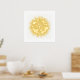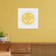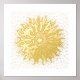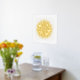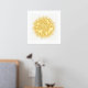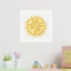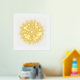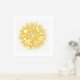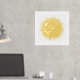 Cette belle impression d'art présente une véritable illustration de mandala de soleil en feuille d'or avec des étoiles de confetti. Parfait pour un studio de yoga ou un espace de méditation.
