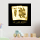Cette véritable affiche en feuille d'or présente les cartes de jeu King et Queen of Hearts et deux champs de modèle de texte. Cela fait un cadeau parfait pour les jeunes mariés, les nouveaux mariés, les mariages ou la Saint-Valentin.