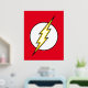 Le logo emblématique du flash Lightning Bolt, un boulon jaune qui traverse un cercle blanc sur son arrière - plan classique de couleur rouge vif.