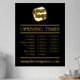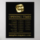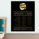 Découvrez les heures d'ouverture de votre entreprise dans un style luxueux avec l'un de nos modèles exclusifs d'horaires d'ouverture ! En plus de mettre votre logo et du texte sur l'impression, vous pourrez customiser sa couleur arrière - plan pour un produit vraiment sur mesure. Explorez d'autres possibilités de notre Collection aujourd'hui - feuille d'or incluse!