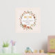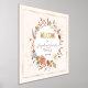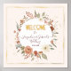 Une belle Affiche de bienvenue Mariage personnalisée avec les noms, l'événement et la date du couple. Une chute douce, thème de couleur automne avec feuillage de feuilles botaniques et fleurs dans une couronne de style BOHO a été élégamment peint en aquarelle avec de véritables accents de feuille d'or par Audrey Jeanne Roberts, artiste et designer de renommée internationale. La couleur Arrière - plan peut être modifiée. Ambre chaleureux, vert sauge à la menthe douce, pêche, terre cuite et thème de couleur bordeaux. Droit d'auteur .