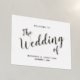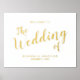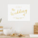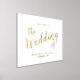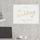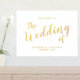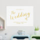 Écriture moderne Affiche de bienvenue Mariage blanc et or avec titre en or police de script moderne avec détails en or police sans serif moderne sur arrière - plan blanc.