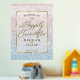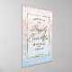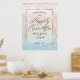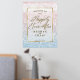 Affiche de bienvenue mariage | Real Foil Accents - Eaux océaniques scintillantes et brillantes dans le soleil couchant - dans les tons pâles de rose rose poussiéreux et bleu poussiéreux - texte apparaît sur un cadre doré brillant blanc éclatant qui montre le design mais permet de lire facilement le texte. Accentué par une belle calligraphie manuscrite élégante. Facile à personnaliser modèle mariage