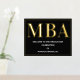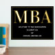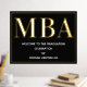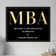 Une soirée de remise de diplômes du MBA accueille une affiche avec feuille d'or, texte blanc et un arrière - plan noir. Ajoutez simplement vos informations, ajoutez cette affiche à votre panier et célébrez cette réalisation majeure. Black Gold MBA Graduation Welcome Foil Signet affiche Conception des fêtes | ©Melissa Patton - Designer