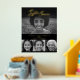 Affiche funéraire dans un simple papier peint noir et or avec une photo en haut et trois photos en dessous que vous pouvez utiliser pour montrer votre défunt lors de leur cérémonie de départ. Personnalisez avec le nom et la date de naissance et de décès de votre être cher. Cette cérémonie funéraire dans nos coeurs à jamais bannière est idéale pour toute personne qui est chère et restera dans leur coeur pour toujours. Typographie originale et design graphique cardiaque par Sarah Trett pour www.mylittleeden.com (Crédit photo Guilherme Stecanella).