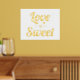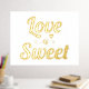 Moderne "L'amour est doux" cite typographie audacieuse et feuille d'or du coeur sur imprimé blanc.