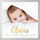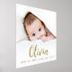 Photo poster with your baby's name in an elegant calligraphy script font with the date of birth, weight and length below.