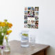 Ajoutez une touche personnalisée élégante aux décorations de maison avec une impression monogrammée de papier-feuille doré collage photo unique. Les images et tout le texte de ce modèle sont simples à customiser. (CONSEIL EN MATIÈRE DE PLACEMENT D'IMAGE : Une façon simple de centrer une photo exactement comment vous voulez est de la rogner avant de la télécharger sur le site Zazzle.) Le design moderne blanc, gris et or présente de véritables feuilles métalliques, un nom de famille de calligraphie de script élégant, un monogramme de typographie classique et 17 images de votre choix. Ce panneau customisé d'art mural fait une idée de cadeau de conservation réfléchie pour la famille et les amis. Quelle meilleure façon de décorer votre maison qu'avec vos souvenirs les plus chers.