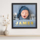 Affiche photo avec le nom de votre bébé, la date de naissance, le poids et la longueur en caractères gras d'or ou d'argent.