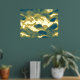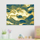 Impressions Dorure Ocean Waves Gold Foil avec un Arrière - plan bleu