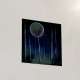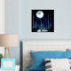 Impression de feuille élégante avec des oeuvres de la lune illuminant une forêt de bouleaux rehaussée de feuille d'argent.