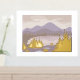 Obtenez votre véritable imprimé de feuille d'or 18x24 pouces avec un pastel, lilas, montagne violette, mer et paysage avec des arbres dans des tons dorés complets. Les arbres ont un style de luxe avec la véritable feuille d'or et est agréable pour les maisons nordiques. Choisissez différentes tailles, blanc environnant. Conçu par Hobinishop