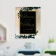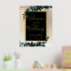 Une typographie dorée moderne, chic et élégante Aquarelle verte florale Symbole de bienvenue de Noël avec feuillage en feuille d'aquarelle verte peinte à la main sur un dégradé d'or jaune chic avec neige blanche et flocons de neige avec feuille d'or véritable.