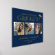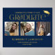 Tableau d'accueil pour les diplômes modernes, avec 3 photos, parties scintillant d'or, texte qui dit félicitations à notre "diplômé", le nom des diplômés, le nom de l'école ou du collège et l'année de graduation. Les styles, tailles et couleurs de polices de texte modifiables peuvent être modifiés en cliquant sur le lien personnaliser après personnalisation.