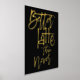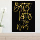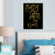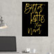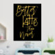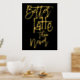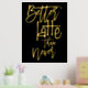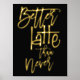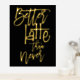 Fun Better Latte Than Never Black Luxury Real Foil dans votre choix d'or ou d'argent pour ce jeu humoristique sur des mots disant sur un arrière - plan noir classe que vous pouvez changer à une autre couleur si vous le souhaitez.