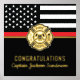 Cette conception comprend un drapeau de pompier avec des rayures noires et blanches, ainsi qu'une fine bande rouge. "Félicitations" et l'insigne d'un pompier se trouve au-dessus du nom du pompier, lieutenant ou chef qui est diplômé ou qui prend sa retraite. Fêtez dans le style !