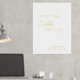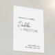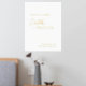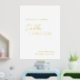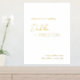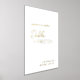 Panneau de bienvenue mariage en feuille d'or de style moderne avec un design simple et minimal avec le nom de la mariée dans un script élégant et le nom du marié dans une police sans serif contemporaine. Vous trouverez ci-dessous, dans le coin inférieur droit, les détails de votre événement. Tout le texte est imprimé avec du papier journal. Un design minimaliste qui s'accorde bien avec n'importe quel style de mariage.
