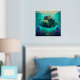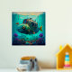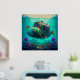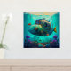 Décorez votre mur ou votre coin dans votre bureau à la maison avec cette affiche en feuille d'or ou d'argent - une Pointe sous la mer animaux marins et coraux marins avec un sous-marin steampunk.