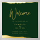 Cette véritable affiche d'art en feuille d'or fait un signe de bienvenue mariage idéal avec le texte et les éléments de design en feuille d'or réel frappant. Arrière - plan de style Emerald Green Gold pour la mariage à thème d'or vert parfait.