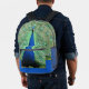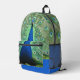 Peacock montre fièrement ses plumes de queue. Corps bleu royal et "yeux" se détachent contre la queue verte foncée et claire.