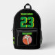 Sac à dos de basket-ball sport Senior Nuit à l'école Monogramme Initiales Gris Motif Black Bagage Tag. Elégant simple moderne filles et garçons blanc et vert et design agréable, avec texte personnalisé et monogramme, avec un motif monogramme exclusif, cadeau parfait pour les voyageurs, les sports scolaires et autres